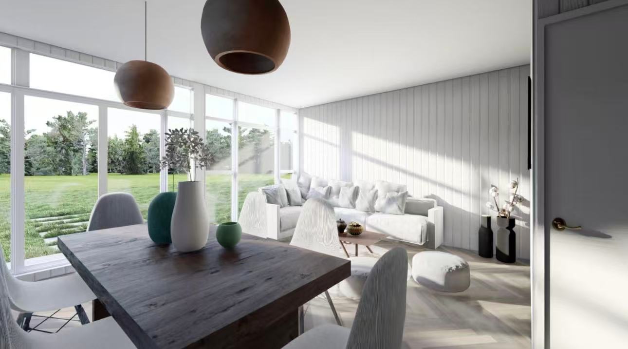 | Material | Sandwich panel, light steel, wood, cement fiber board, and PVC floor Product | Type | Glass curtain wall container |